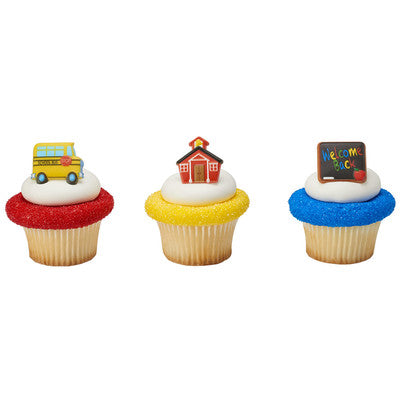 School Icons Cupcake - Desert - Food Decoration Topper Rings 12ct