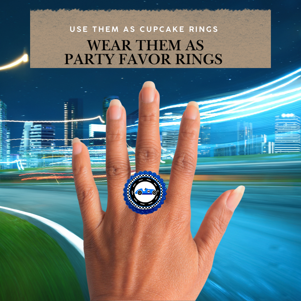 Race Car Easy Toppers Cupcake Decoration Rings -12pk